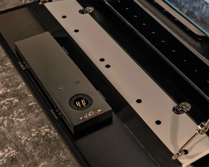 Equipped with our patented, motorized and automated Ultra-Short-Throw projector compartment that fits all residential projectors currently in production. But not all projectors are created equal and all have different throw ratios to make larger images like 120”. Other AV cabinets must be pulled 6”-12” away from the wall to enable the UST projector to create larger images. The Artemis UST compartment is motorized and can programs easily to extend to the ideal position and retract when not in use. This enables the cabinet to be just 2” away from the wall and yet place the projector exactly where it is supposed to be. Artemis is also equipped with a floating and adjustable internal shelf. Projectors are properly placed and cool, filtered air is fed into the air intake of the projector. Hot air leaving the projector is sucked out by exhaust fans, maintaining a perfect operating climate for the projector. Cooling directions are factory-installed and based on the projector model you intend to use. Safety is something we take very seriously here at Aegis. So with Artemis we took extra steps to ensure that no child can be harmed when by fingers in cracks or between closing panels. Our patented “Magnetic Disengage” feature actually separates the UST compartment from the actuator motor with only 17Lbs. of pressure. Once all is clear and the motor is stopped… you simply gently slide the UST compartment back in and it will automatically re-engage.