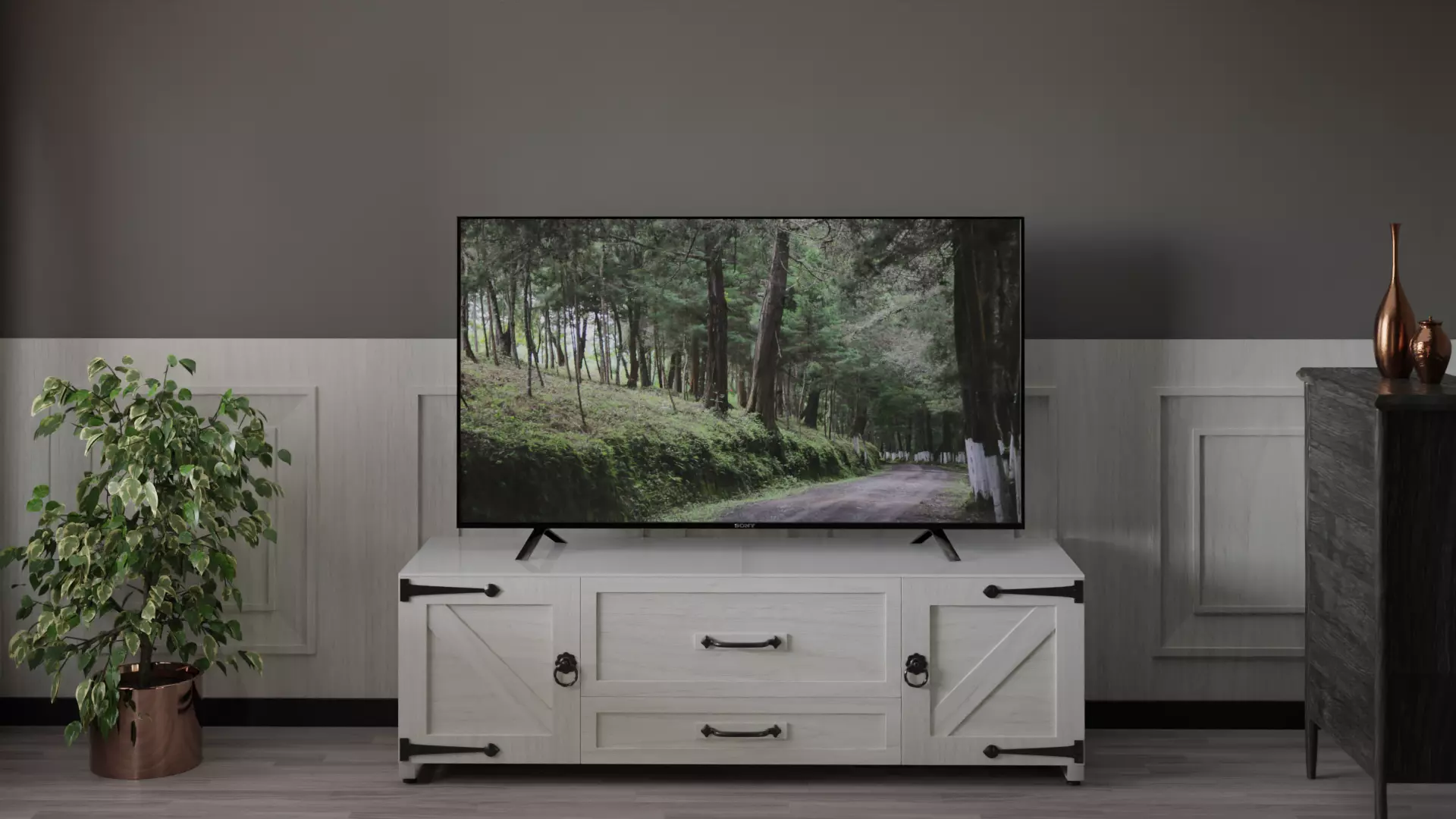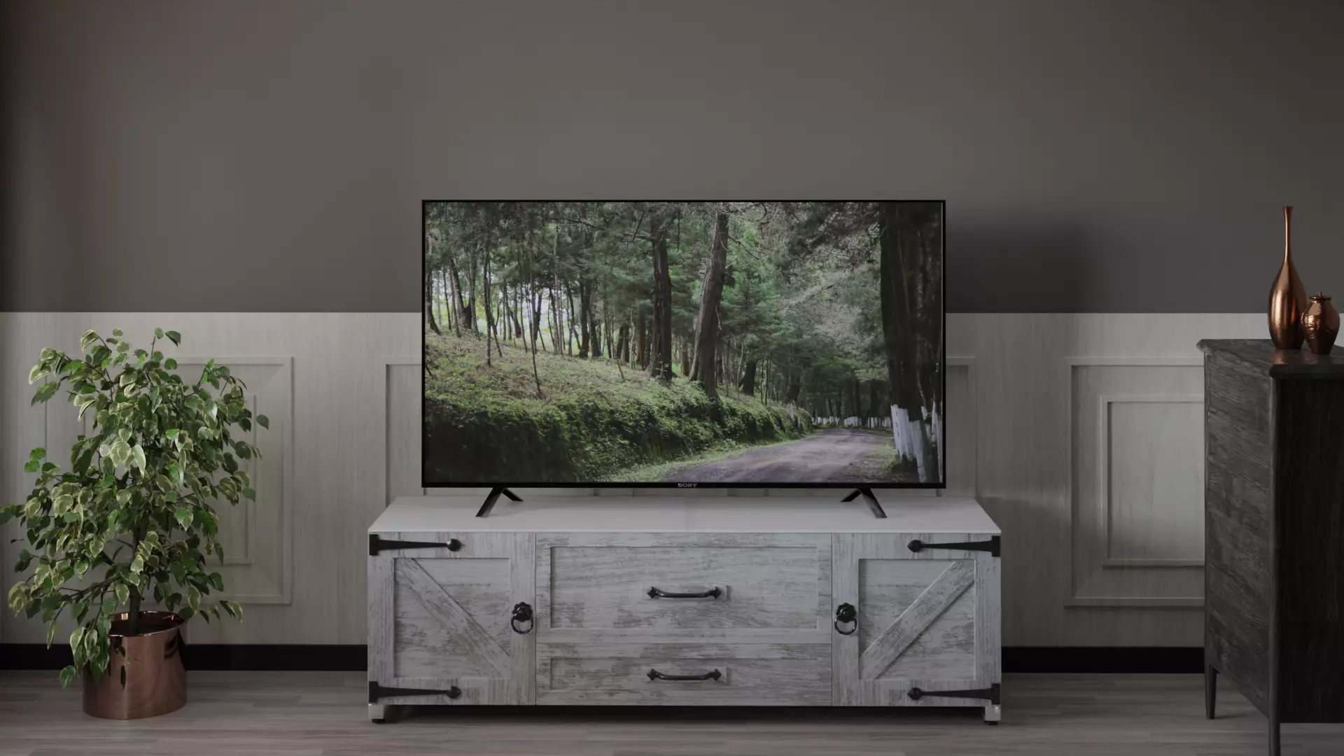 The construction, using industry-grade materials, ensures it lasts. It is strong enough to hold the biggest TVs. Wood and metal are used, along with sturdy finishes, to control wear and tear. The investment is left to be enjoyed for years to come.